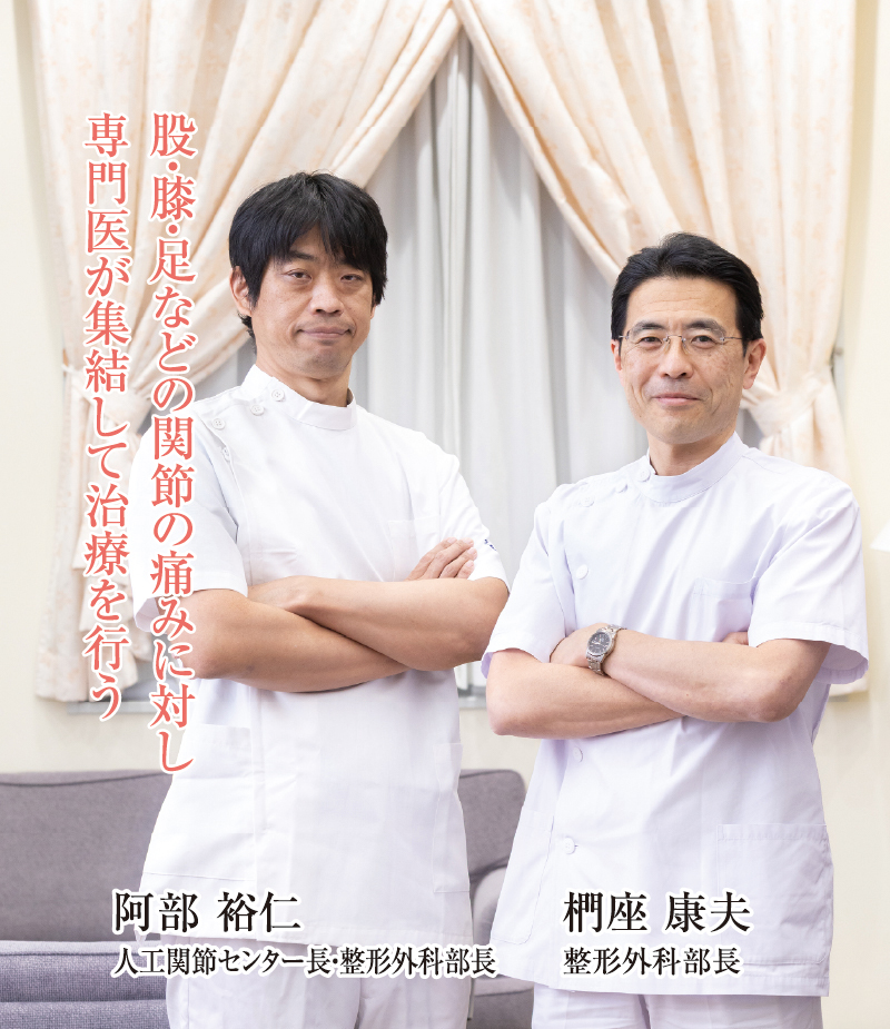 「近年インプラントの機能は向上し、ゴルフや水泳、卓球などができるまで回復する方も多く、アクティビティを楽しみたい患者さんのご要望に沿った手術が可能になってきています。健康寿命を延ばすために、痛みを我慢せずご相談いただければと思います」と阿部先生。椚座先生は「当院ではリハビリに力を入れており、患者さんの生活様式に合わせて、回復期病棟で長期的なリハビリを受けていただくこともできます。また術前と術後の歩行機能を解析し、リハビリに役立てる試みも行っていますので、不安なく治療を受けていただけるのではと考えています」と、それぞれ患者さんにメッセージを残してくれた。
