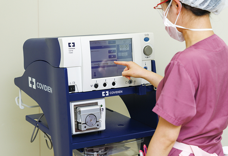 ラジオ波焼灼術で用いる治療装置。この手術では腫瘍を摘出せず、体外から針を指して電流で腫瘍を焼くため、乳房の切開を行わずに治療することができる