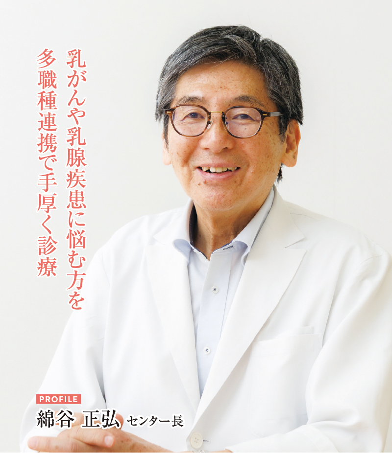 日本乳癌学会専門医・指導医である綿谷センター長は、幅広い乳がん治療に対応可能。「少しでも気になることがあれば、気兼ねなく受診してほしい」と語る