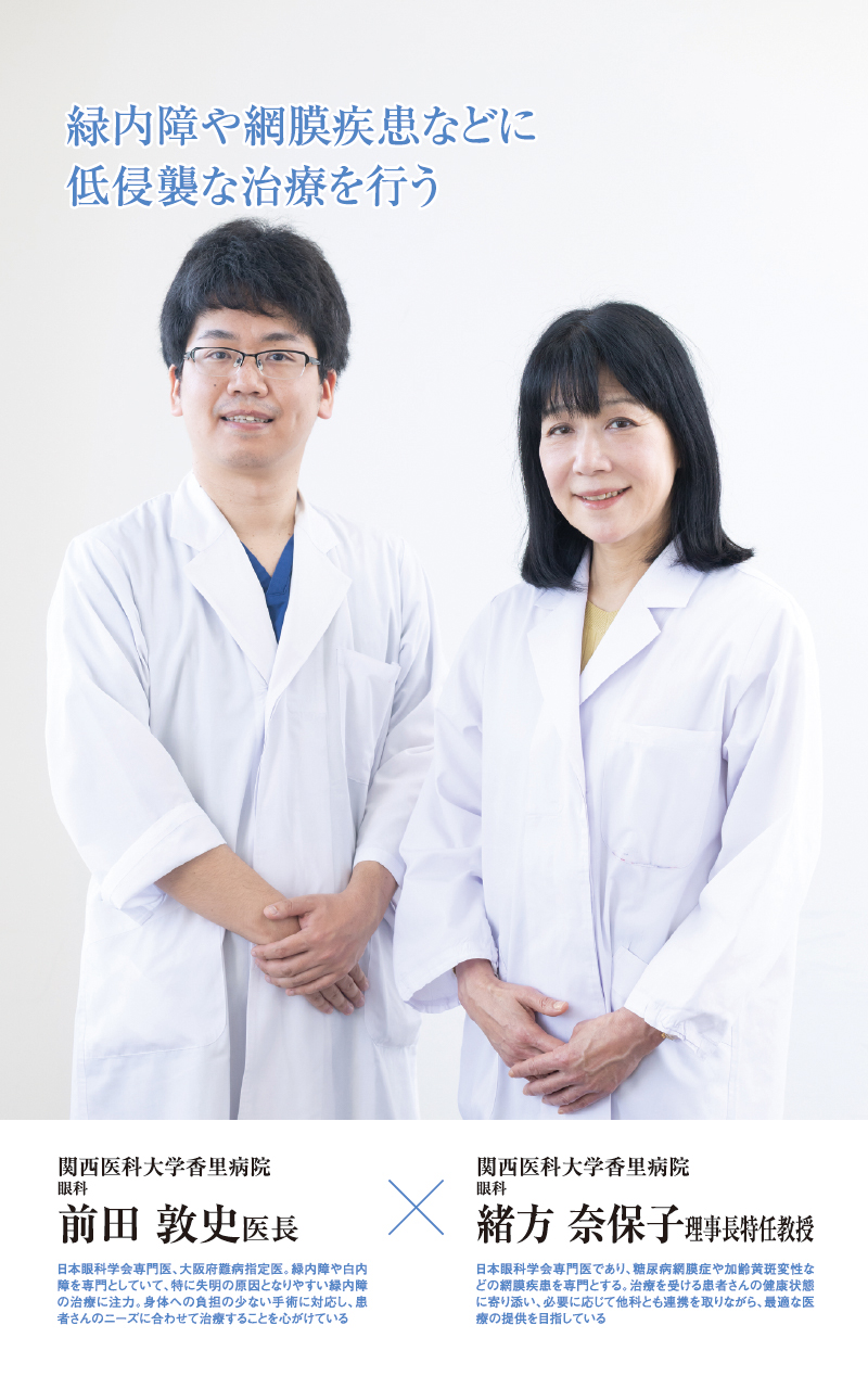 関西医科大学香里病院の眼科では「患者さんにやさしい医療」を目指し、眼科領域の幅広い疾患を診療している。ニーズに合わせた入院対応や治療の特長など、前田先生と緒方先生のお二人に詳細を語っていただいた。